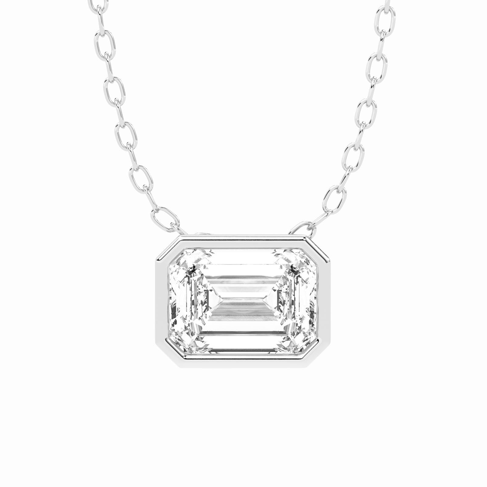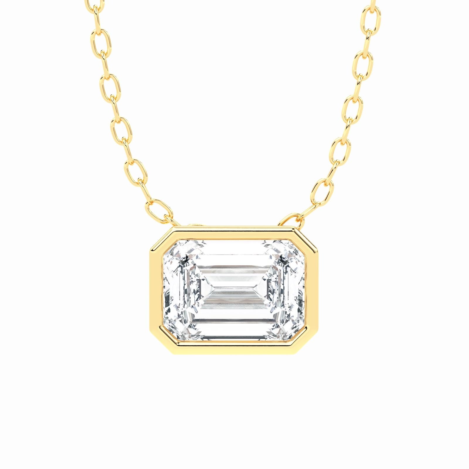 2.00 Carat Emerald Lab Diamond East-West Bezel Solitaire Pendant – IGI Certified – 14K Yellow Gold