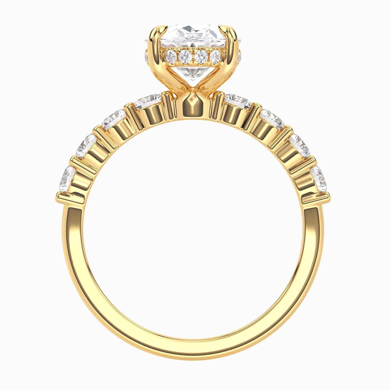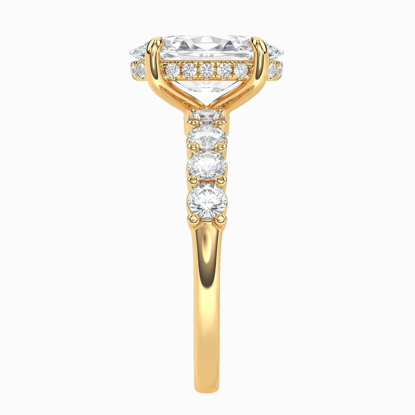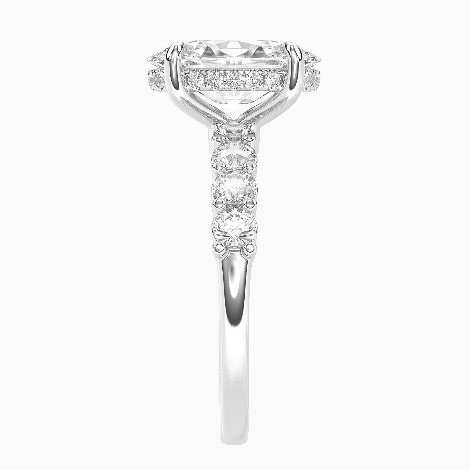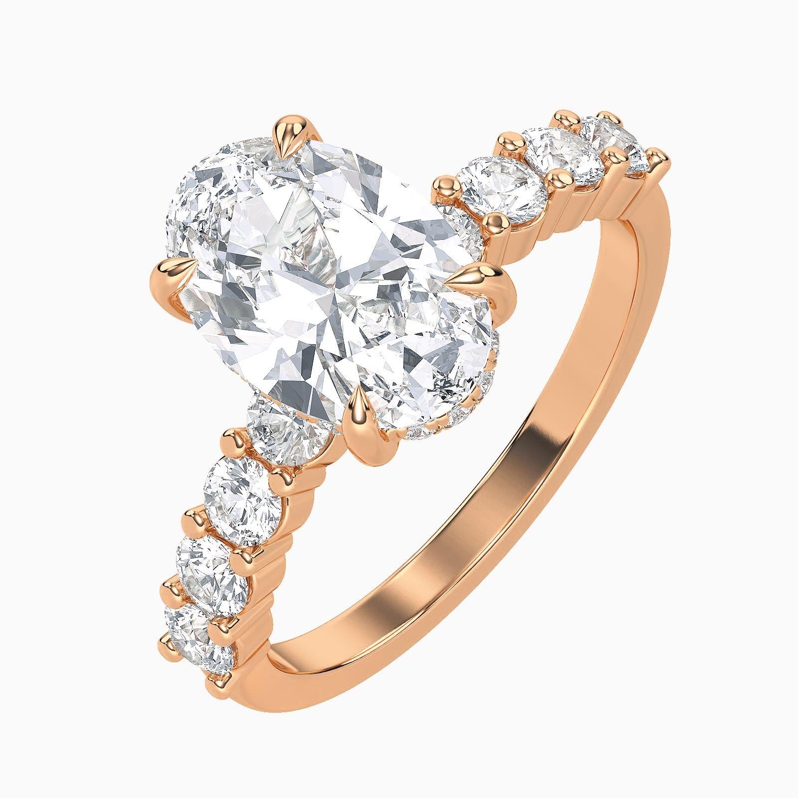 Carat Weight Total: 3.30 CT Metal: 14K / 18K White, Yellow, or Rose Gold Average Width: 1.85 mm Ring Style: Oval Solitaire with Side Stones Center Stone Carat Weight: 2.49 CT Center Stone Shape: Oval Center Stone Color: F Center Stone Clarity: VS1 Center Stone Cut: Excellent Diamond Certification: IGI Certified Setting Stone Carat Weight: 0.81 CT (0.688 + 0.126) Setting Stone Shape: Round Setting Stone Color: E–F Setting Stone Clarity: VS1