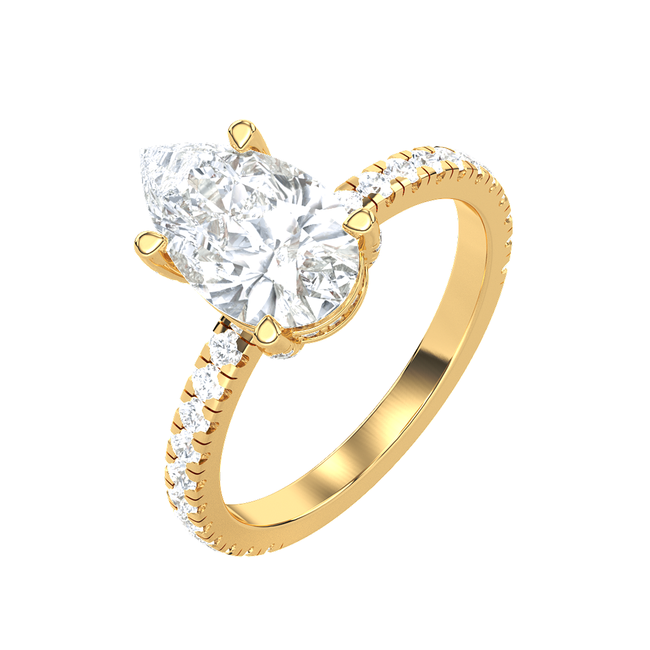 Mark life’s most meaningful moments with this striking 3.91-carat pear-shaped diamond ring. Designed with a hidden halo for added brilliance and set in 14K gold of your choice, this IGI-certified piece balances timeless style with modern elegance.