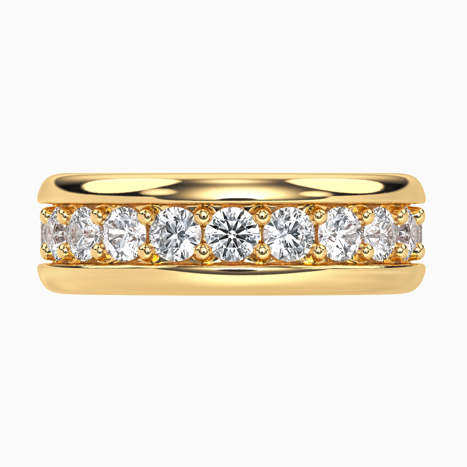 Elevate your commitment with this 4.20 carat round diamond pave set eternity men's wedding band crafted in luxurious 14K gold. The continuous circle of meticulously set diamonds symbolizes everlasting love and strength, while the refined design offers a sophisticated yet timeless appeal. Perfect for the discerning gentleman seeking both elegance and durability in a wedding band.