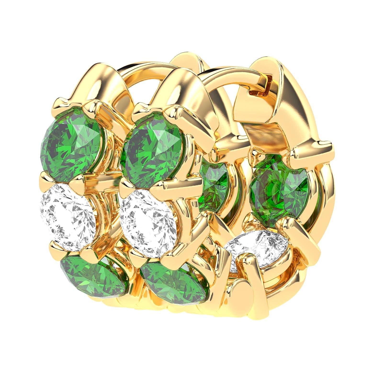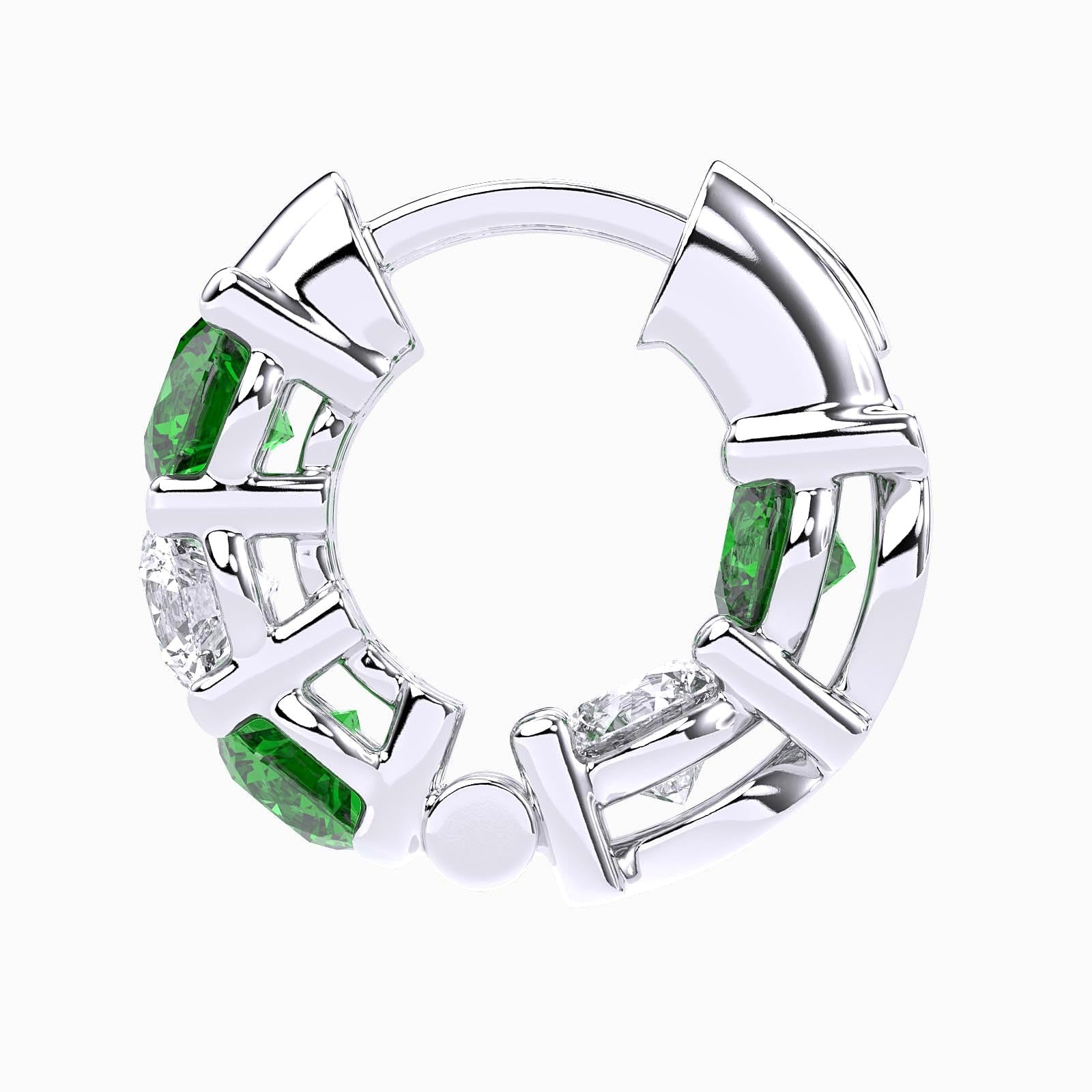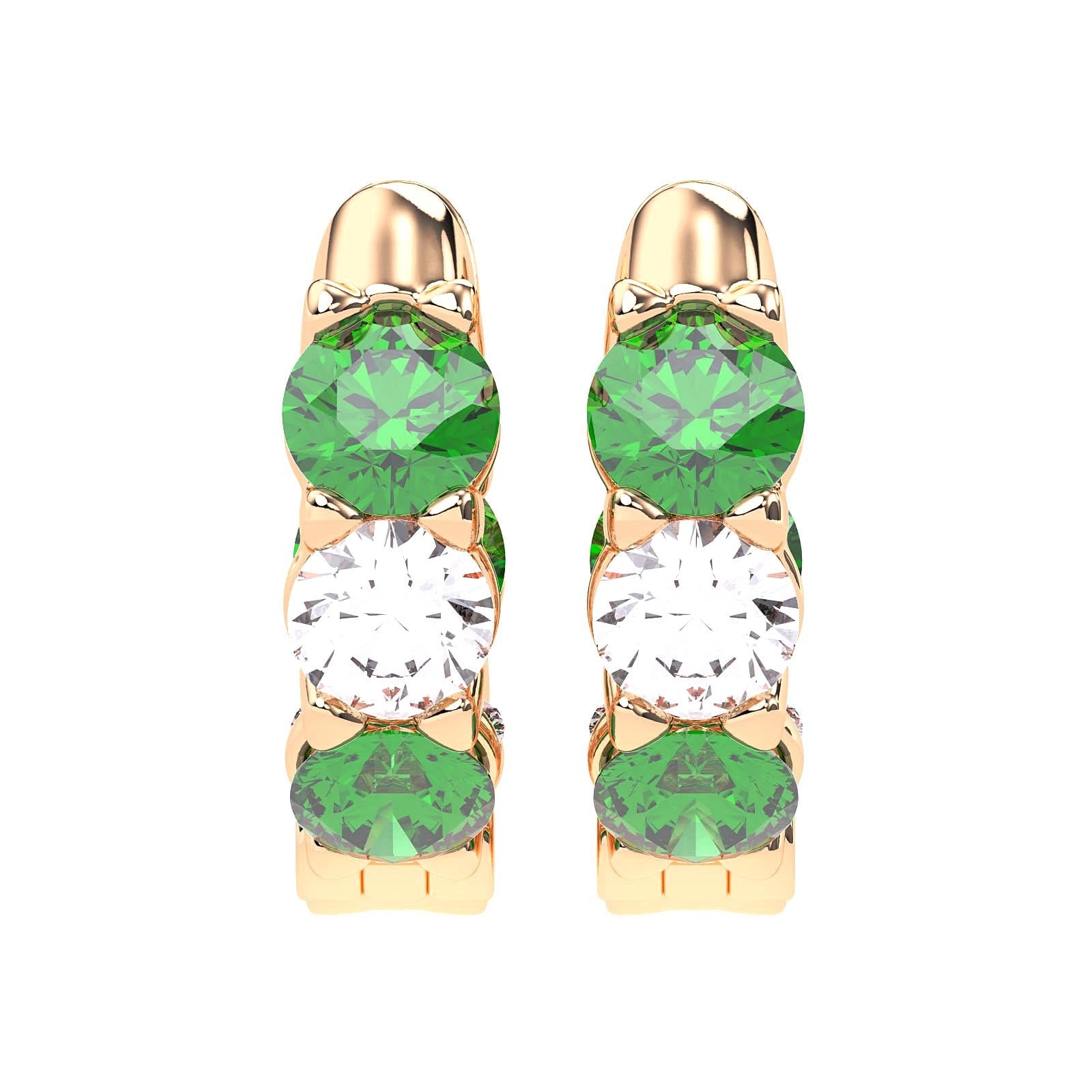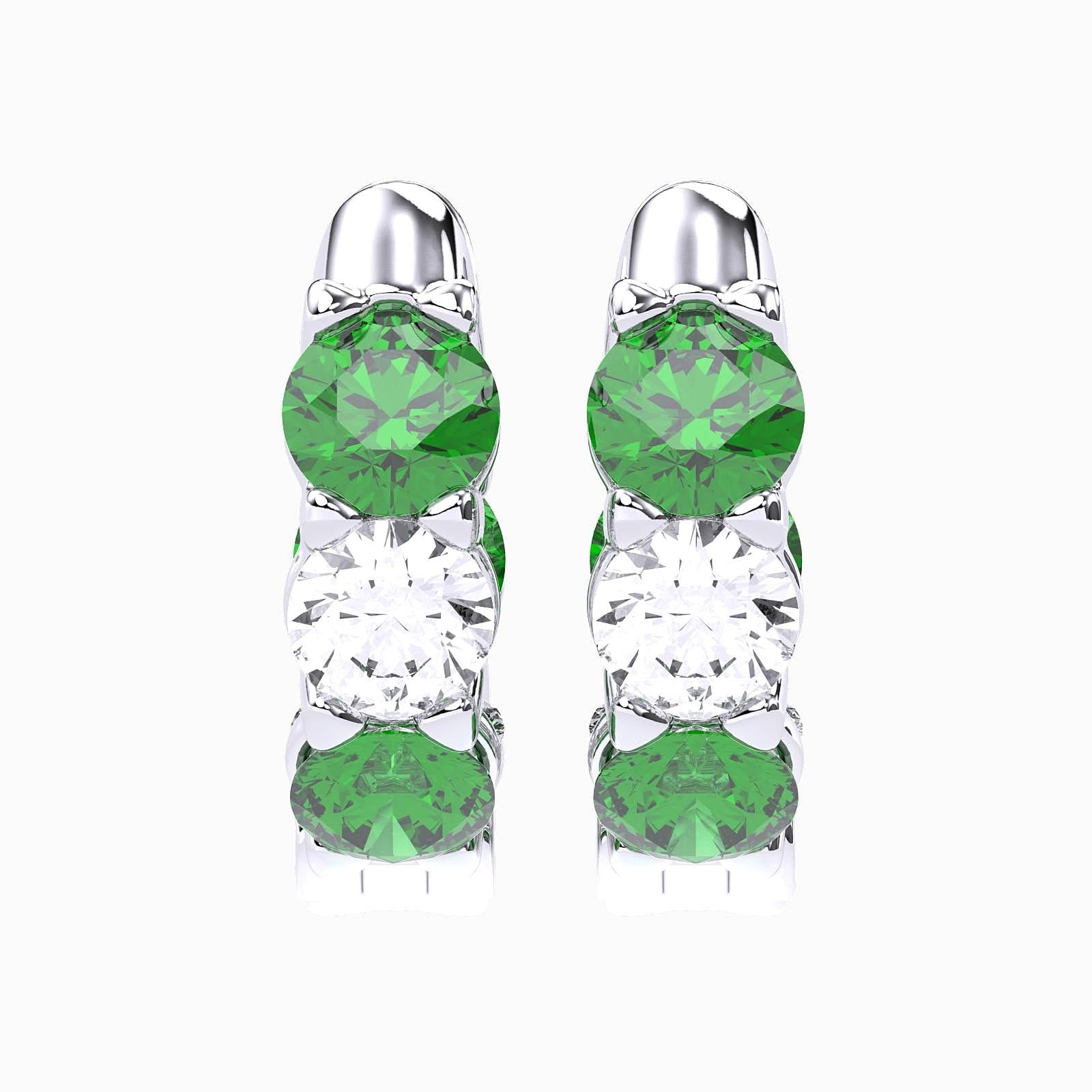 The prong setting of these earrings enhances the vivid hues of the emeralds, creating an elegant interplay of color and light. With their sleek design, they are a radiant celebration of craft and artistry, offering the perfect touch of sophistication.