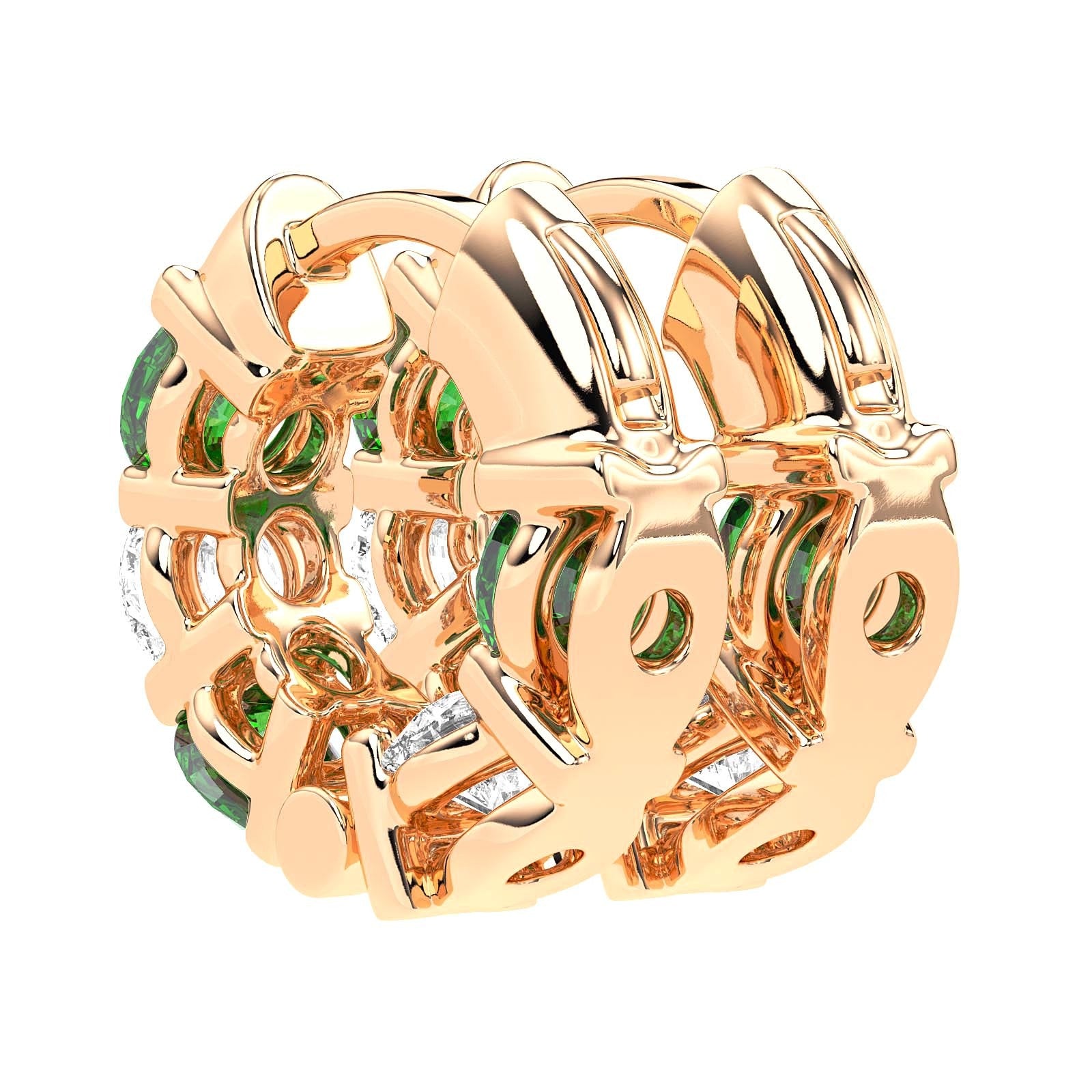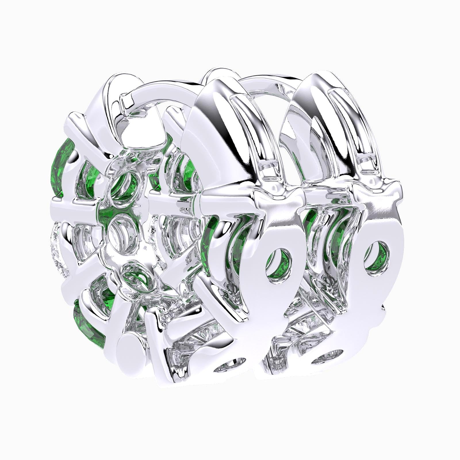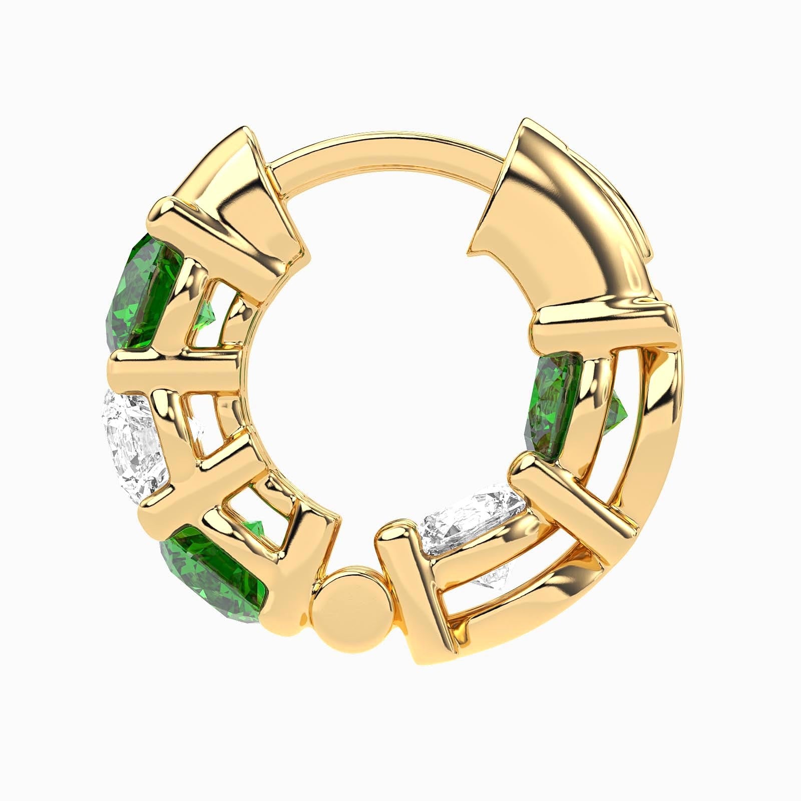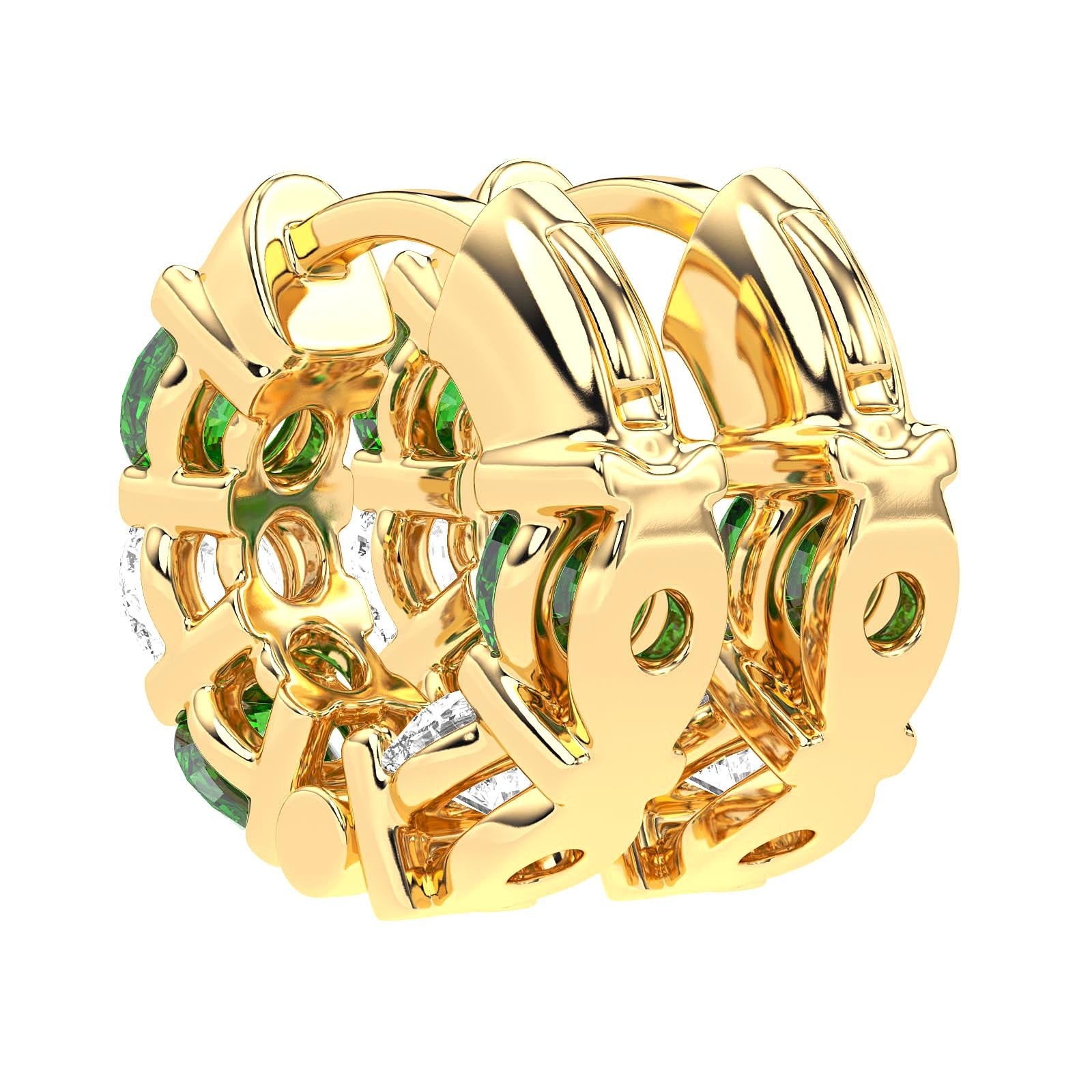 The prong setting of these earrings enhances the vivid hues of the emeralds, creating an elegant interplay of color and light. With their sleek design, they are a radiant celebration of craft and artistry, offering the perfect touch of sophistication.