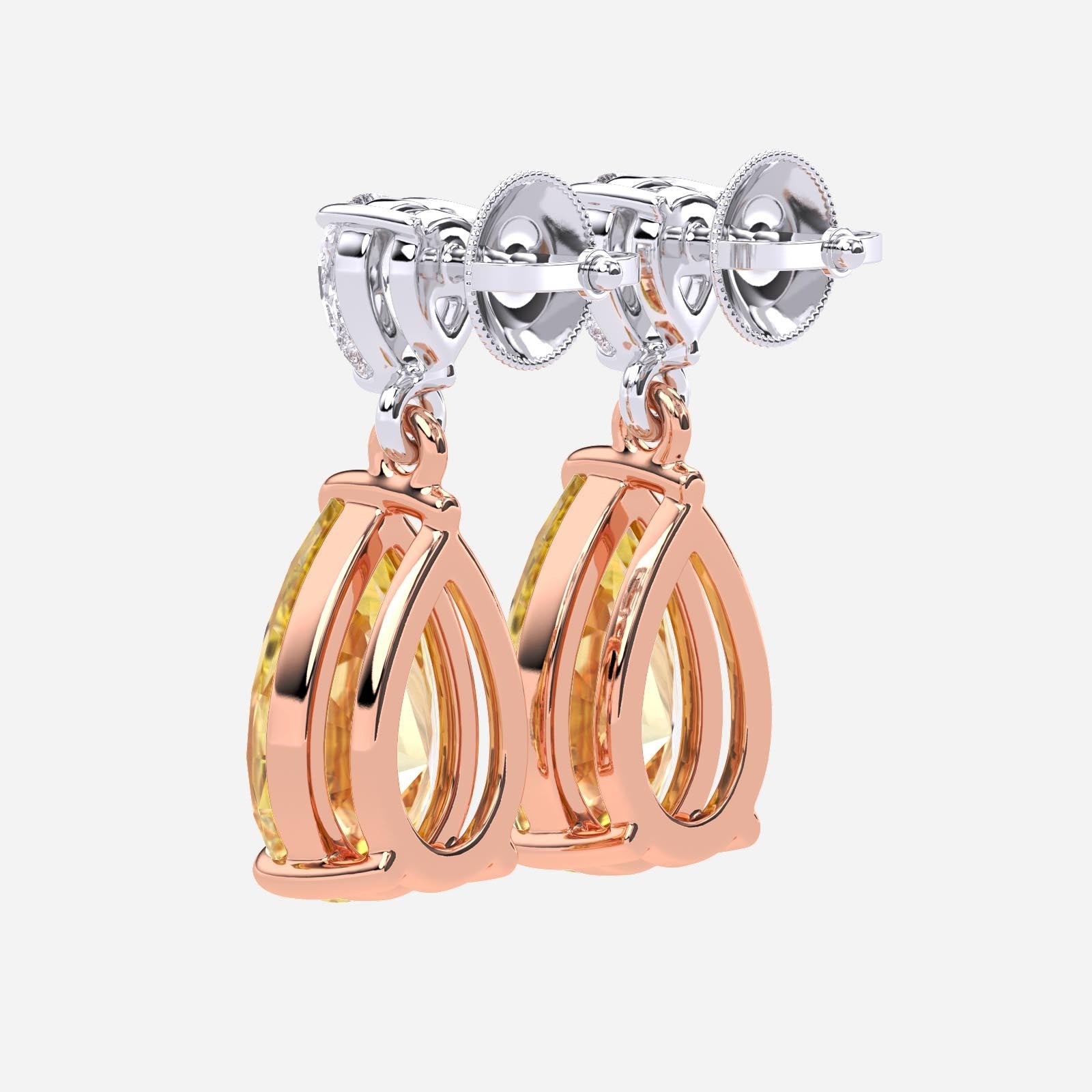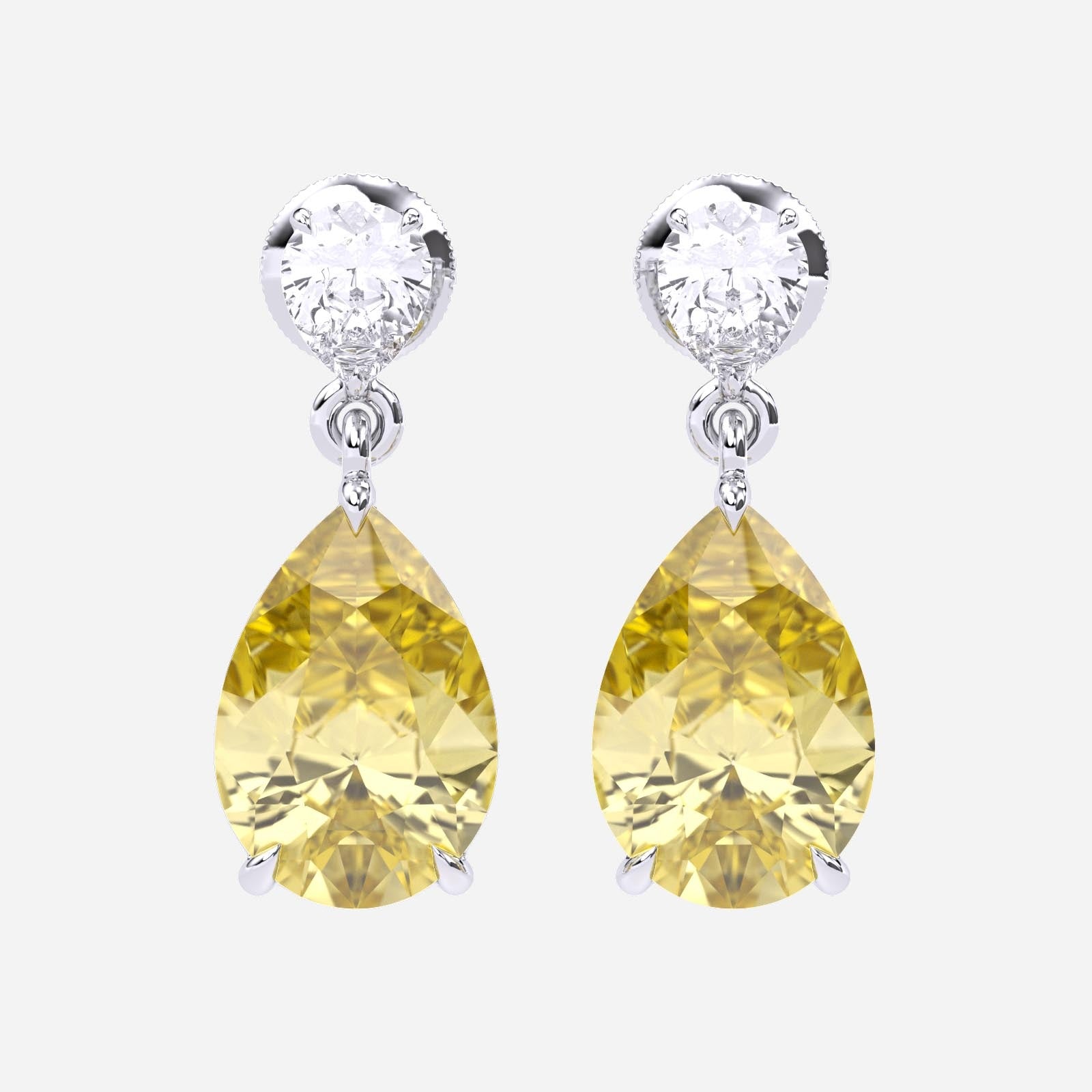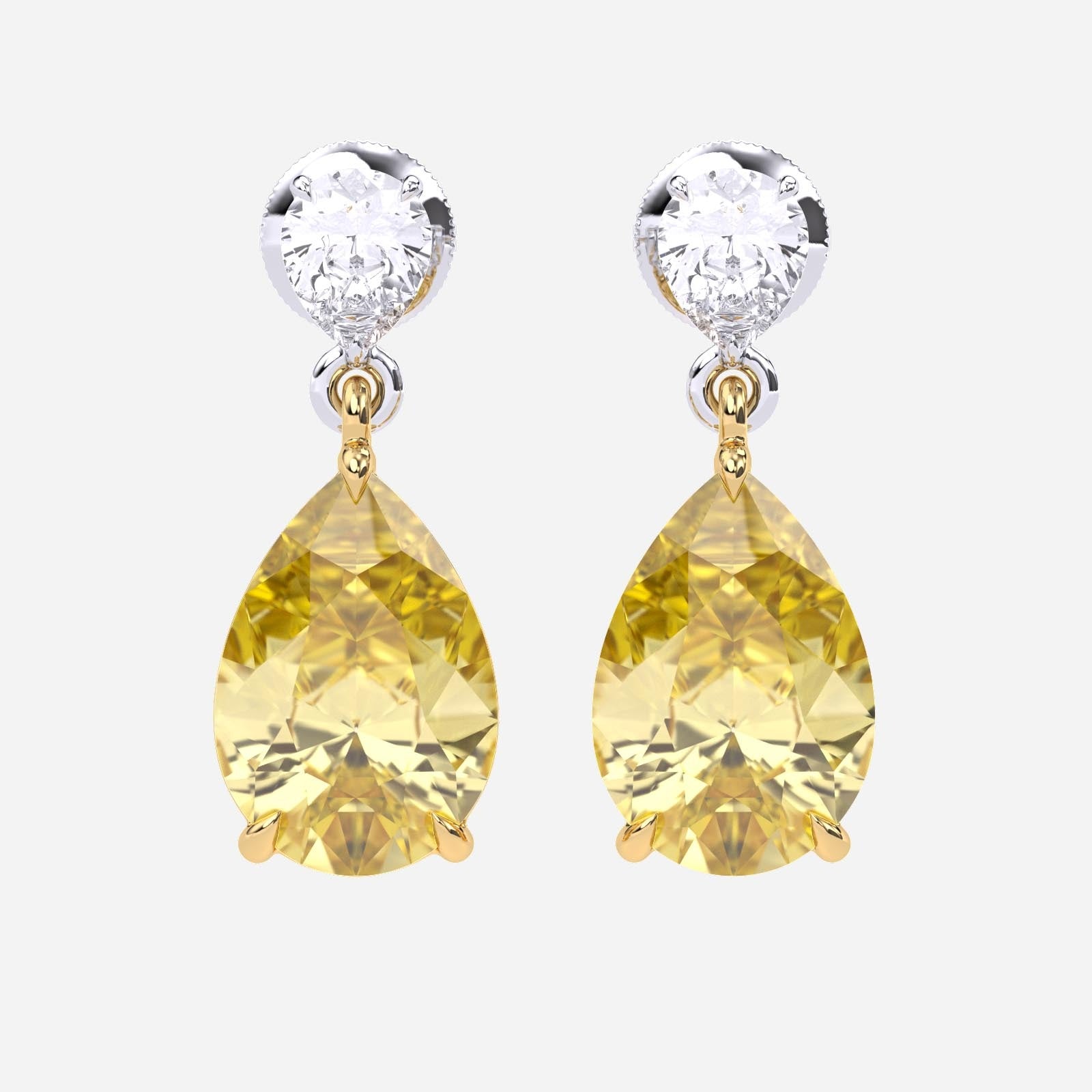 6.00 Carat Fancy Yellow Pear Lab-Grown Diamond Drop Earrings – Excellent Cut – 14K Two-Tone Gold