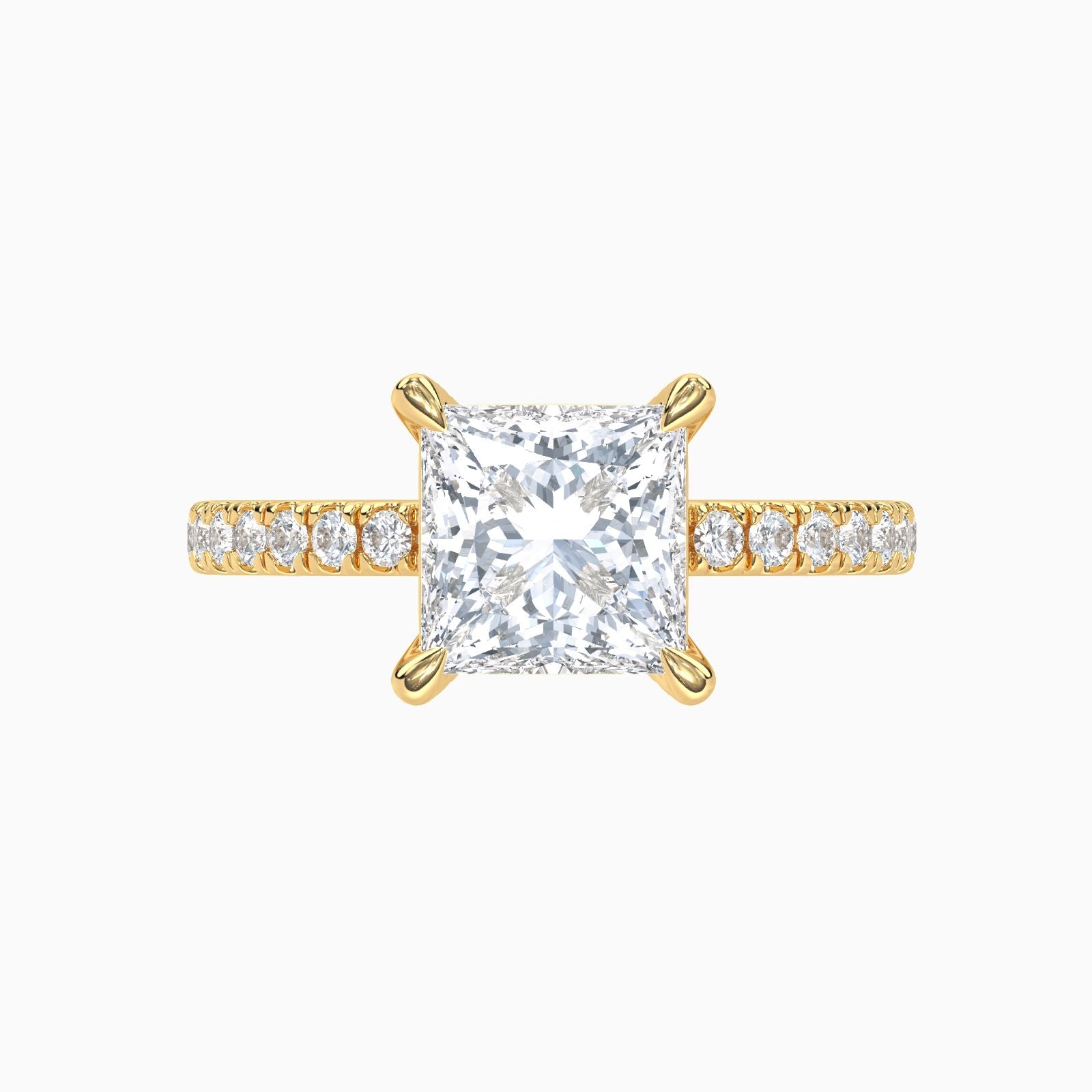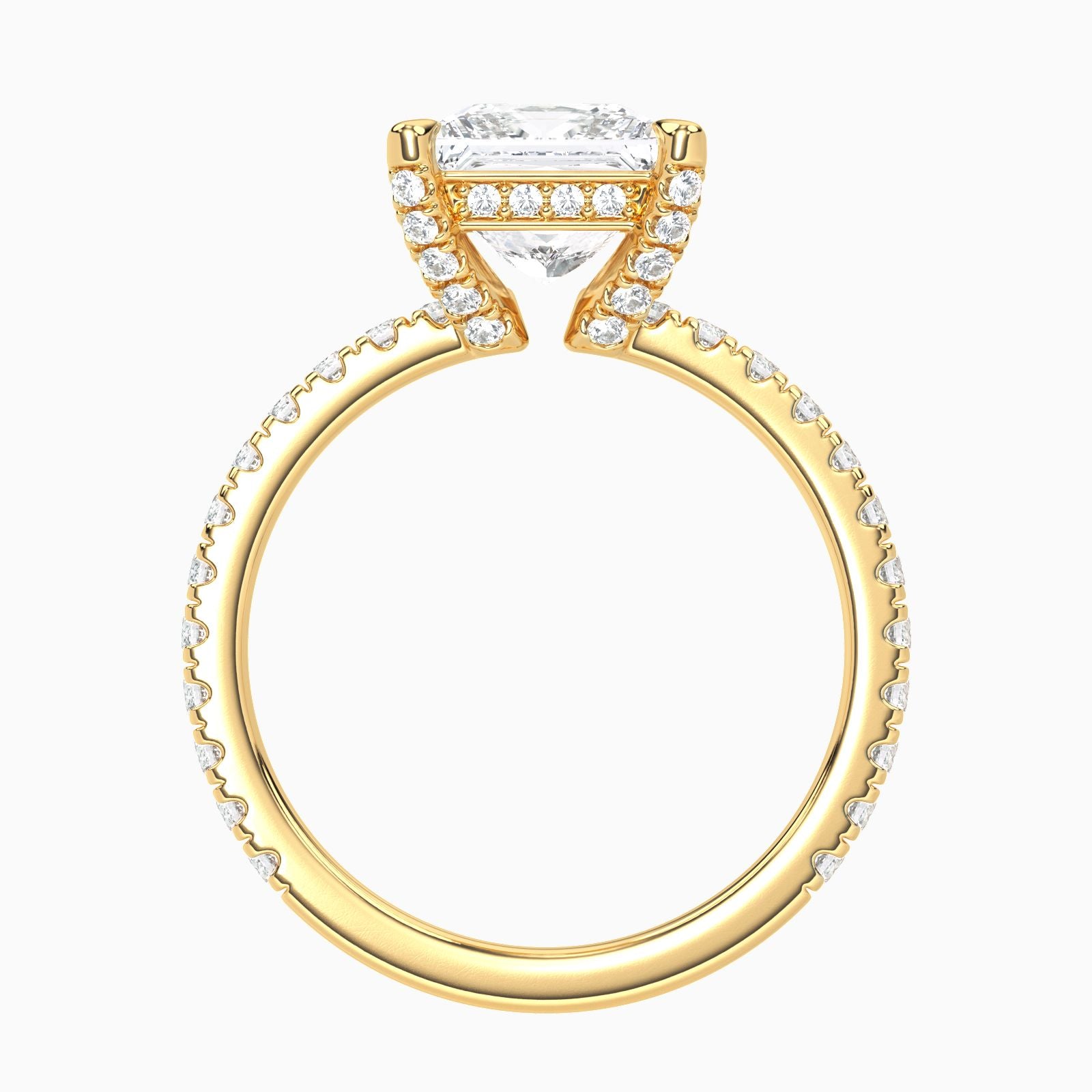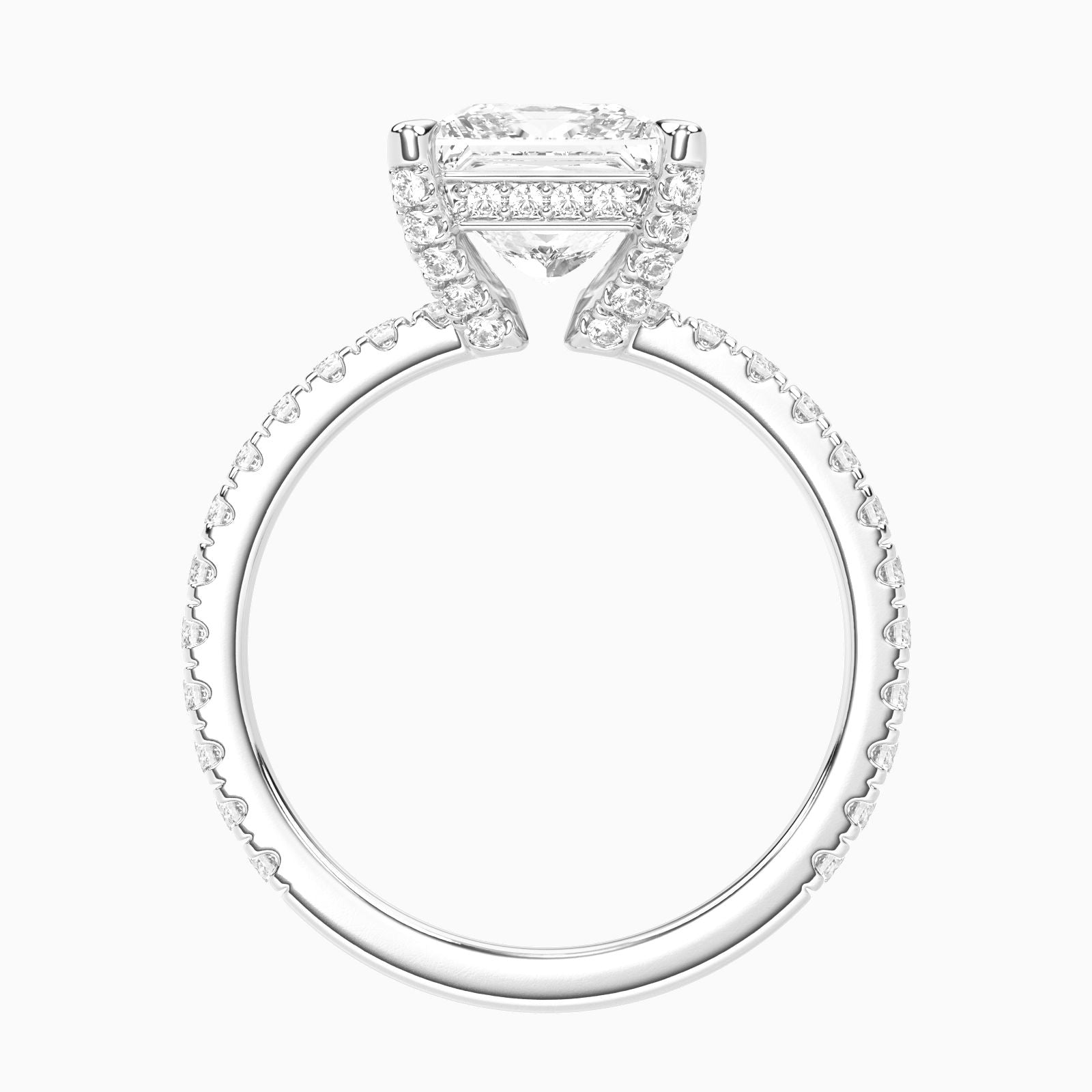 Carat Weight Total: 2.554 carats Metal: 14K White/Yellow/Rose Gold Average Width: Plain Band (Approx. 1.60MM – customizable) Ring Style: Hidden Halo Center Stone Carat Weight: 2.03 carats Center Stone Shape: Princess Center Stone Color: F Center Stone Clarity: VS1 Center Stone Cut: Excellent Diamond Certification: IGI Certified Setting Stone Carat Weight: 0.524 carats Setting Stone Shape: Round Setting Stone Color: E–F Setting Stone Clarity: V